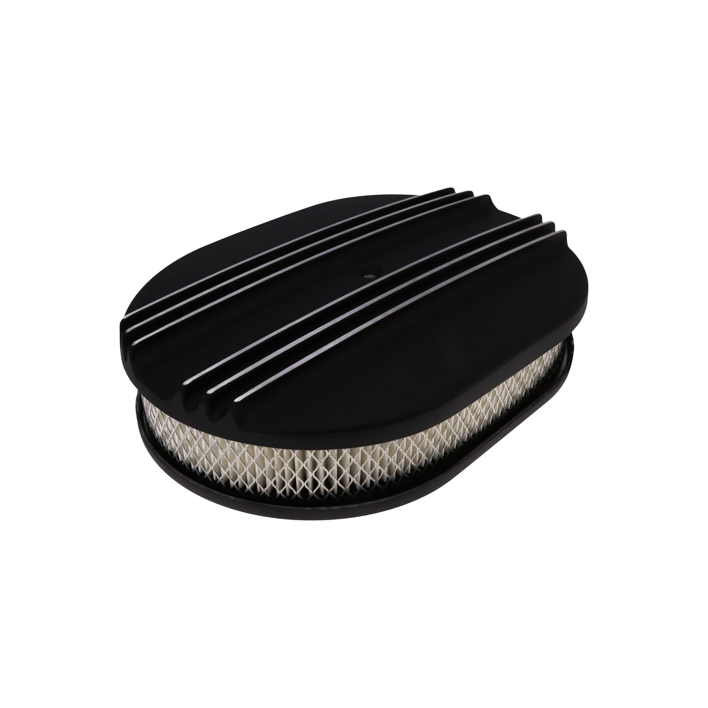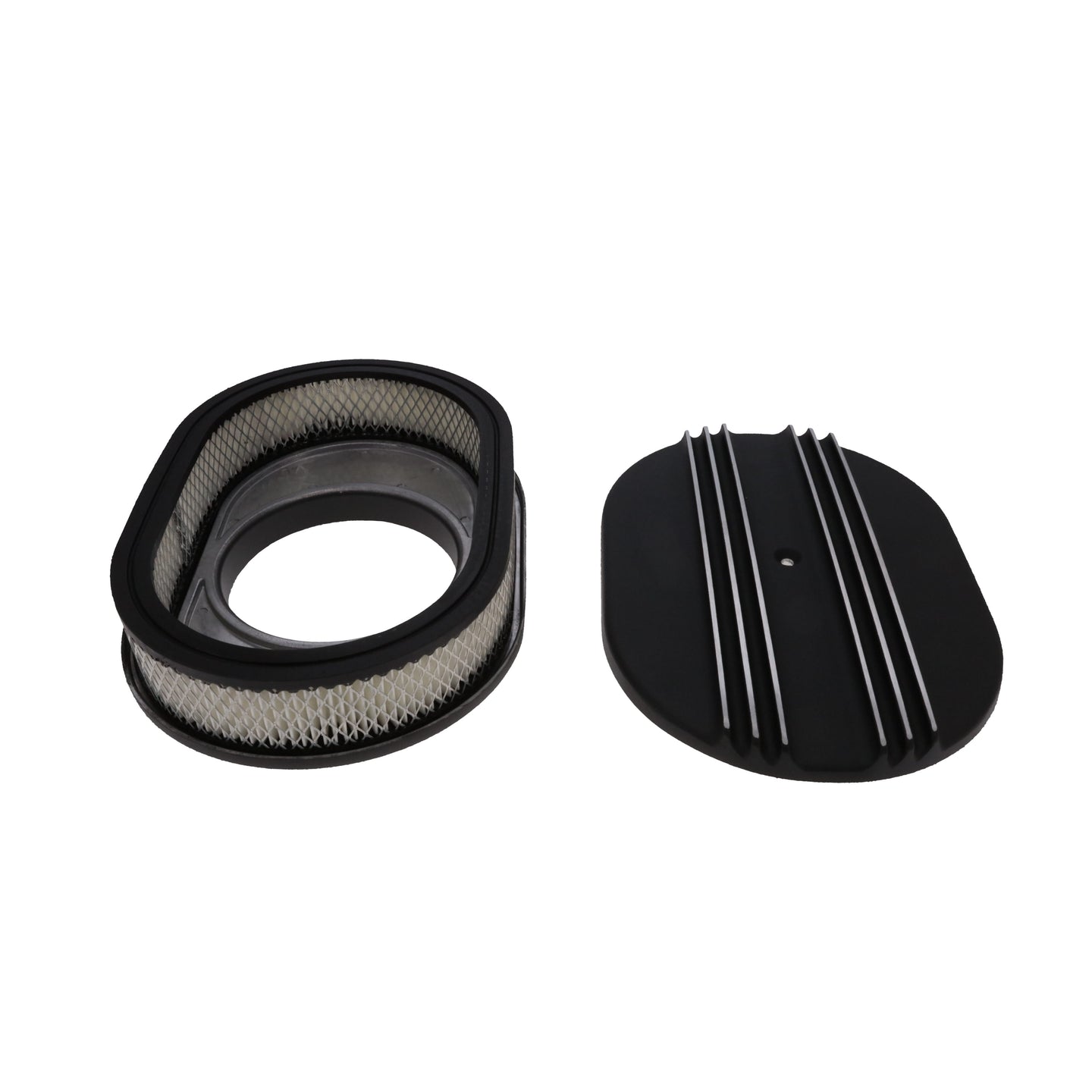 12" X 2" Center Finned Oval Aluminum Air Cleaner Kit, Paper Filter, Black