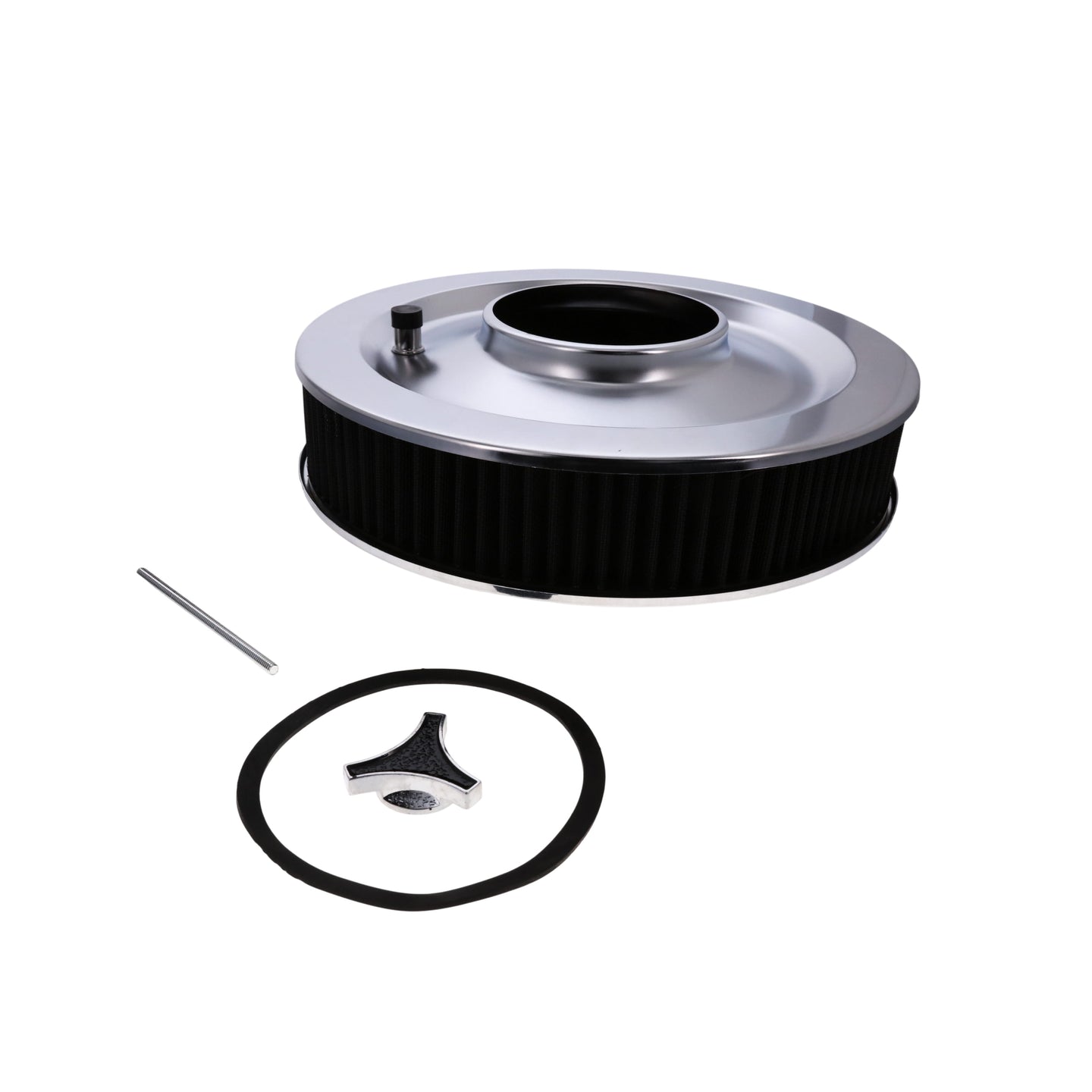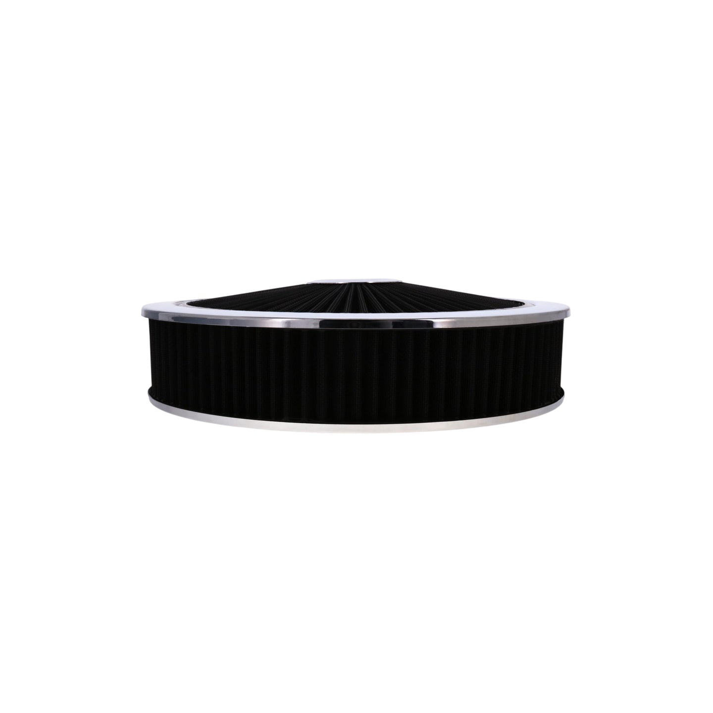 14" X 3" Round Steel Air Cleaner Kit, Black Washable Filter, Flat Base - Chrome