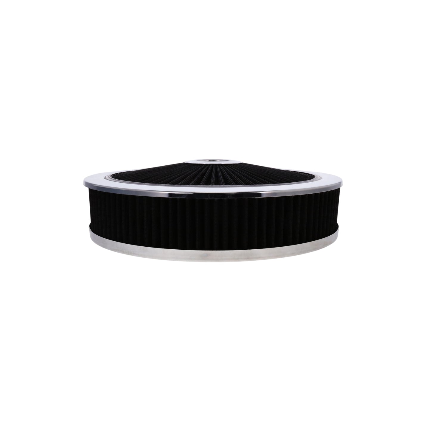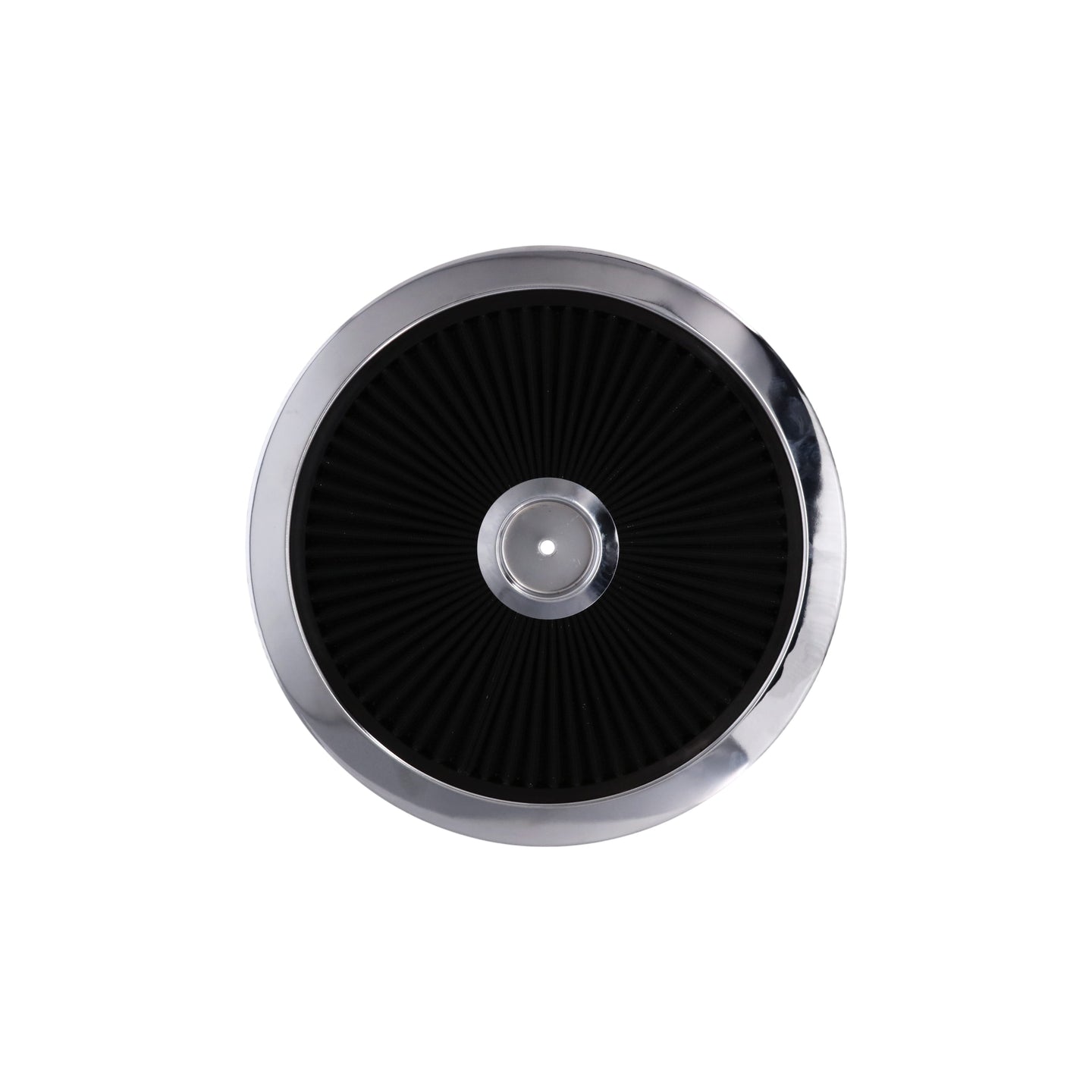 14" X 3" Round Steel Air Cleaner Kit, Black Washable Filter, Recessed Base - Chrome
