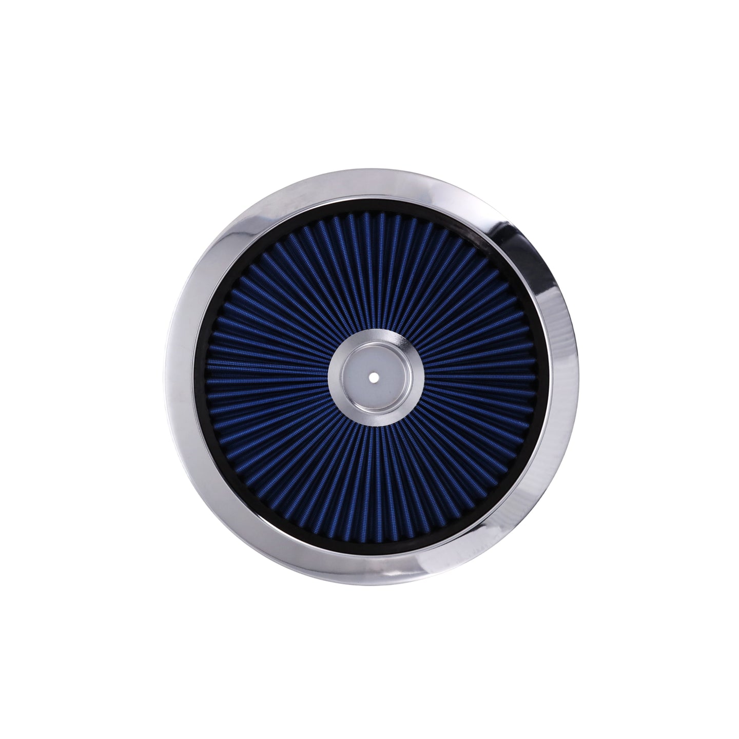 14" X 3" Round Steel Air Cleaner Kit, Blue Washable Filter, Flat Base - Chrome