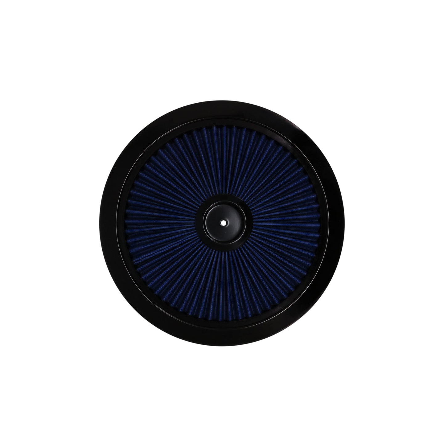 14" X 3" Round Steel Air Cleaner Kit, Blue Washable Filter, Recessed Base - Black