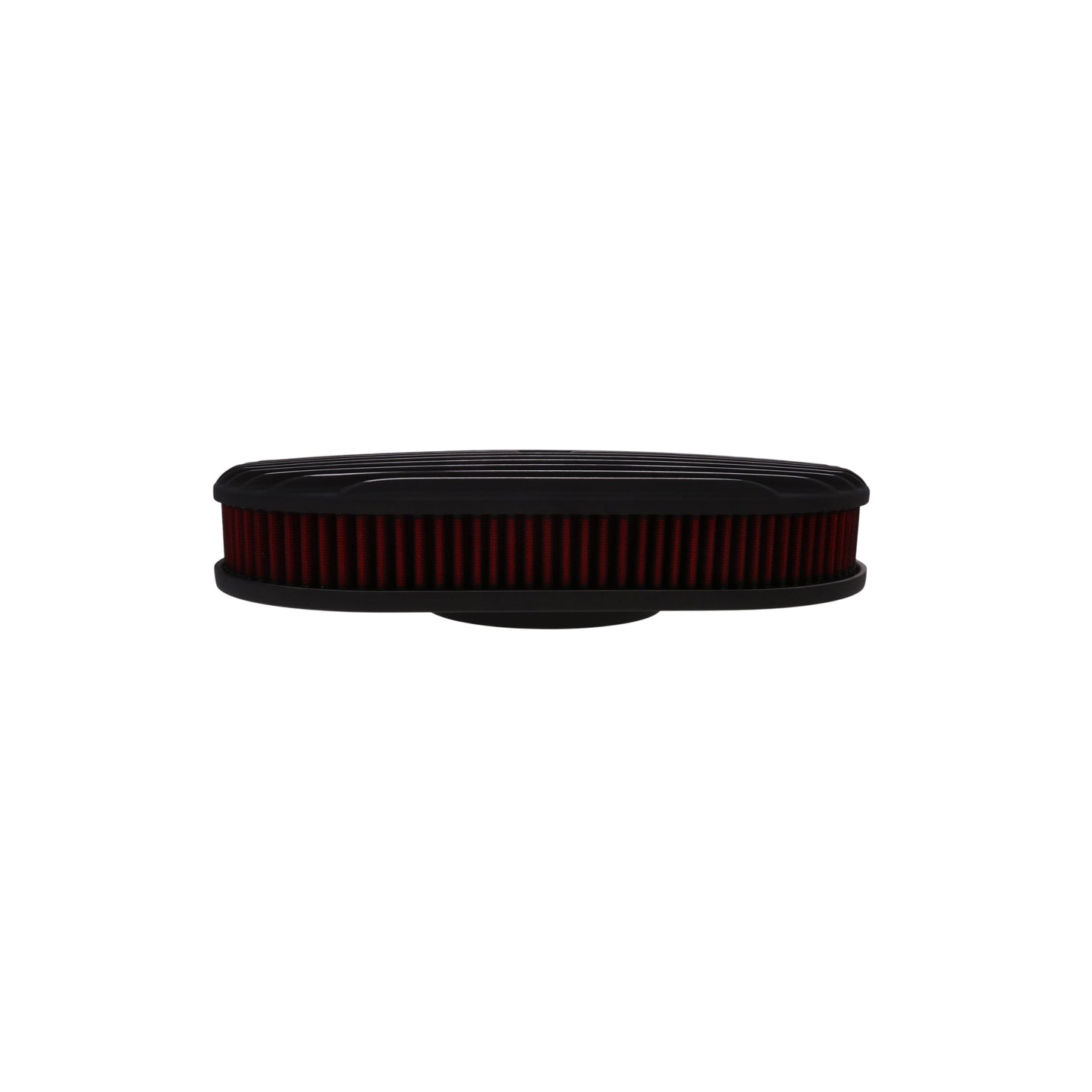 15" X 2" Full Finned Oval Aluminum Air Cleaner Kit, Red Washable Filter, Flat Base - Black