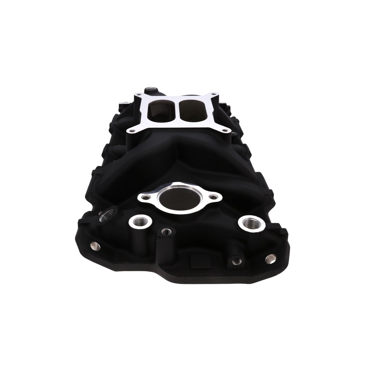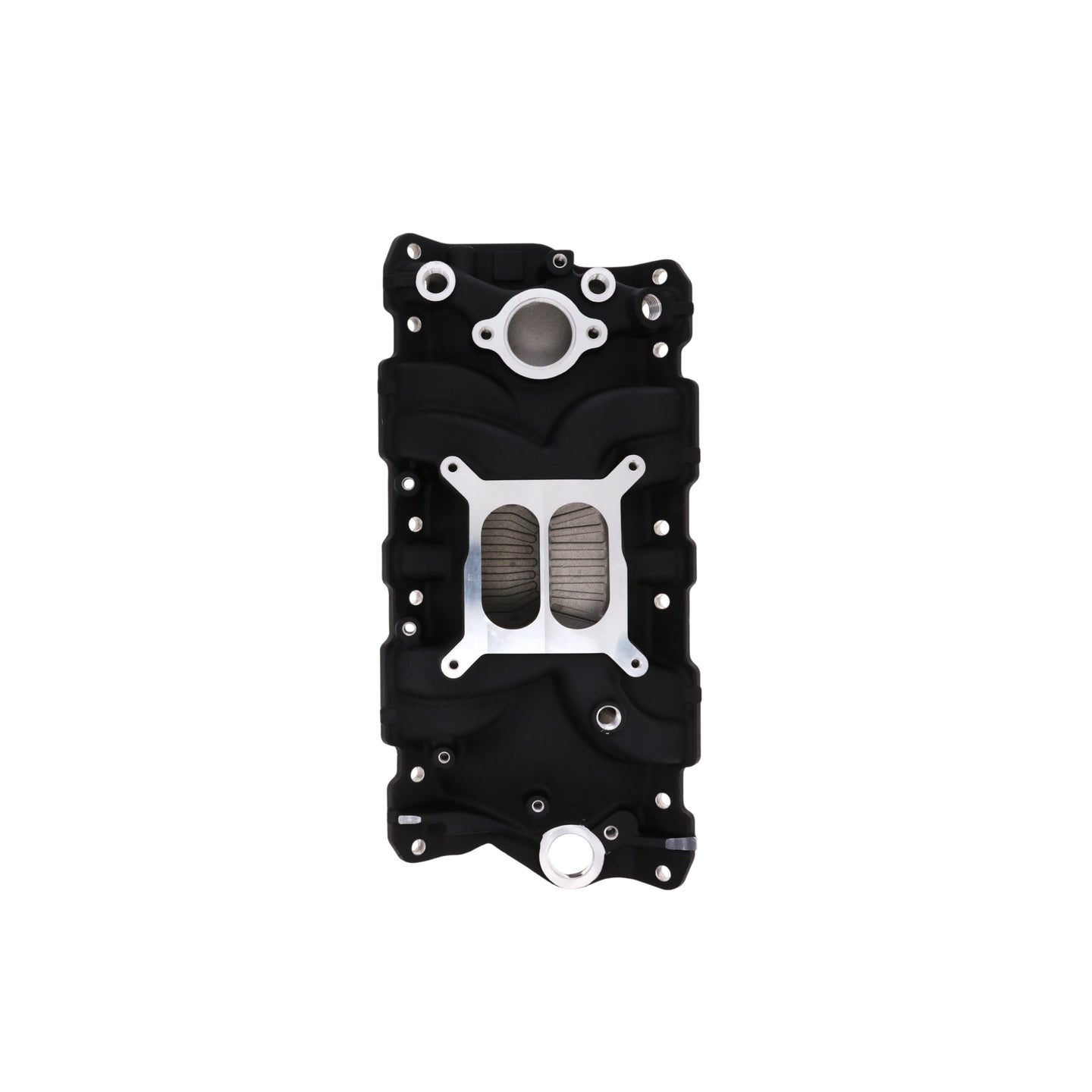 1957-1986 Chevy SB Aluminum Intake Manifold, Dual Plane, Hi-Rise - Black