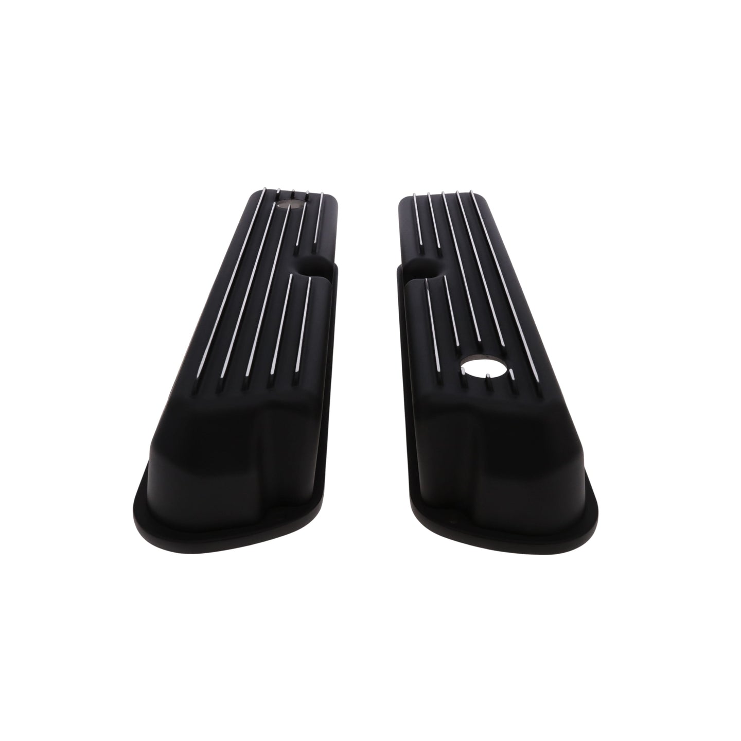 1962-2001 FORD SB 289, 351W Tall Finned Aluminum Valve Cover, 3 13/16" Ht., 1.25" Hole - Black