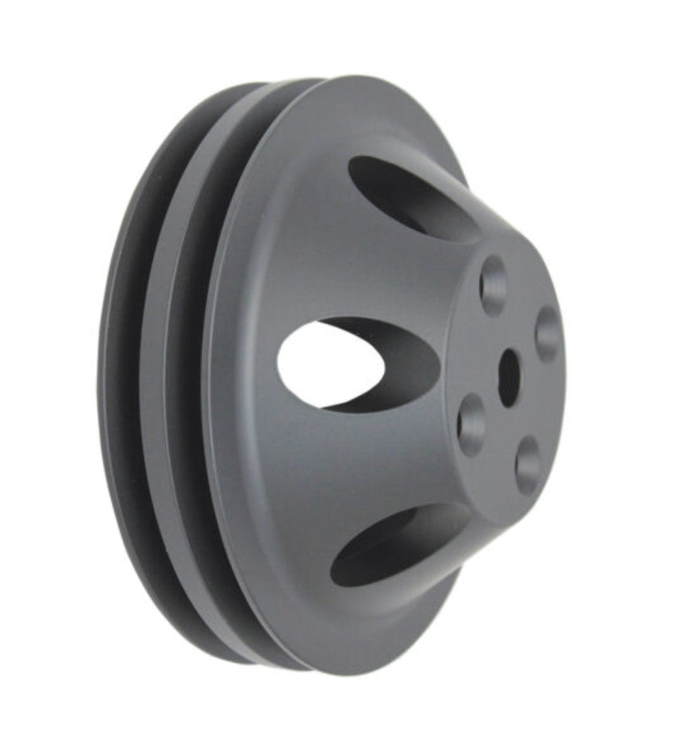 Chevy Small Block Double-Groove Aluminum Long Water Pump Pulley - Black