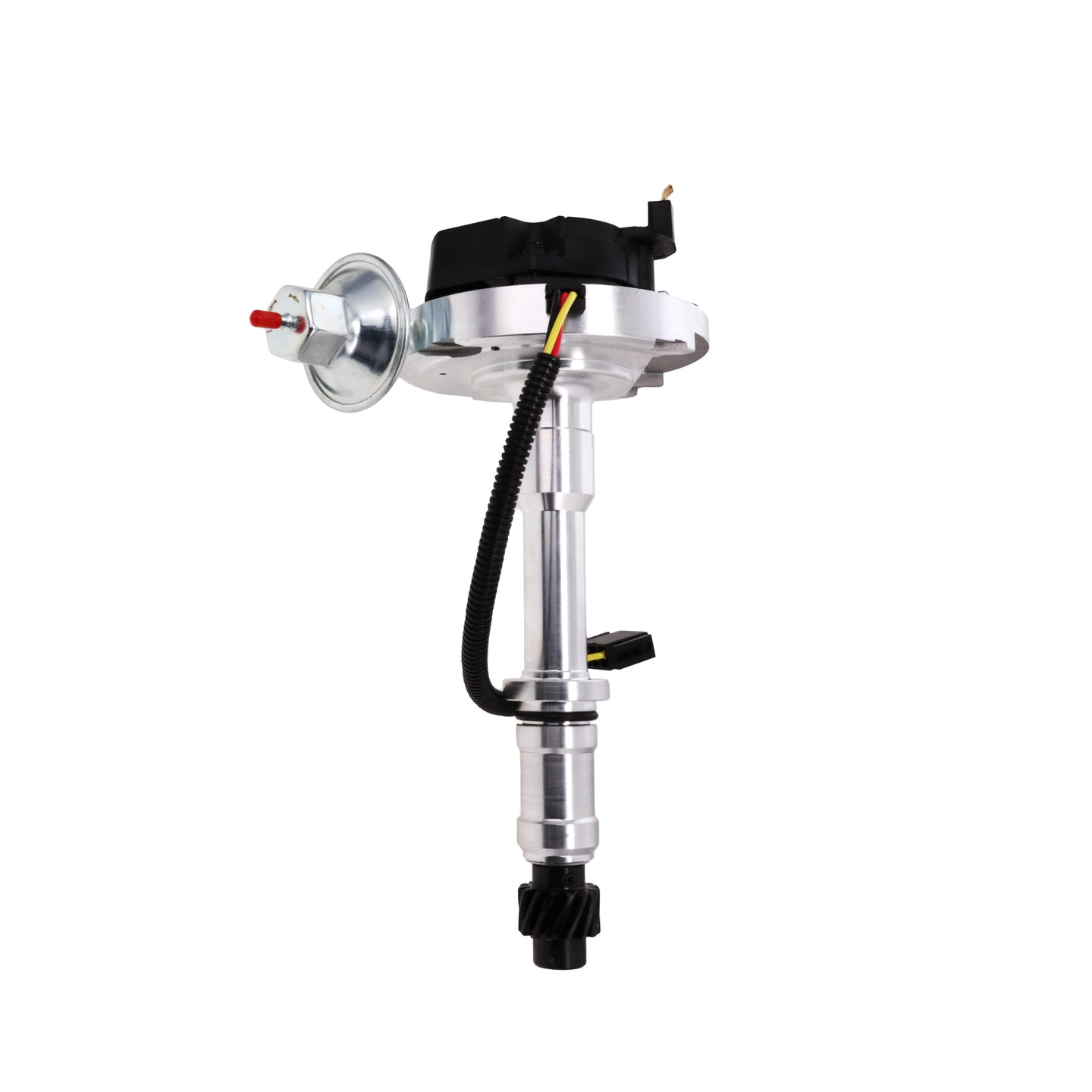 TSP’s HEI Distributor has everything you need, all under one cap. With a high-quality aluminum housing and hardened steel dual bushing construction, it is built to last. It features fully adjustable mechanical and vacuum advances, meaning precision is a breeze. It has a high-output module, high-spark 65,000 volt coil, solid brass terminals, and an easy one-wire hookup.