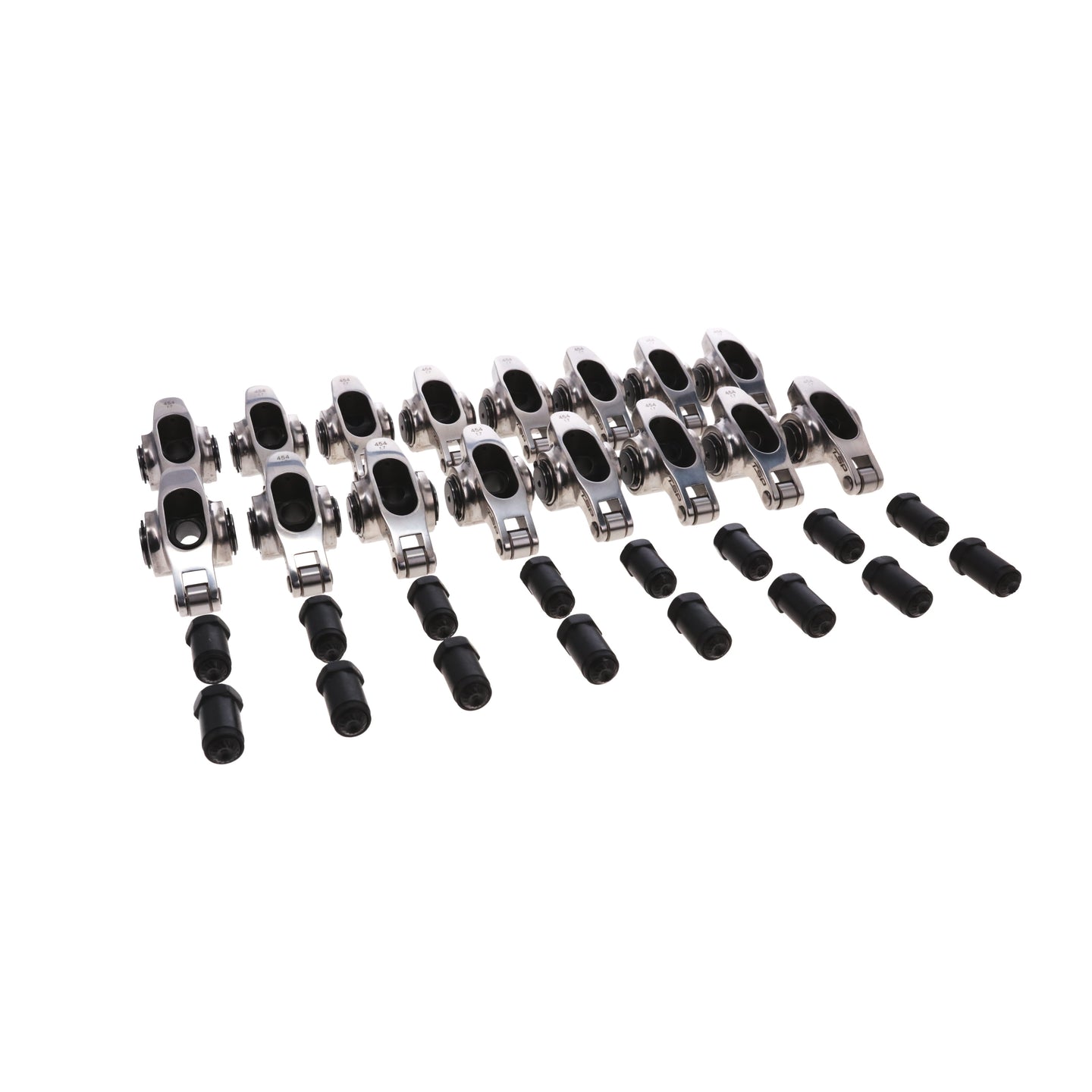 If you're looking to beef up your valvetrain, you can't go wrong with a set of TSP Pro Series Full Roller Rocker Arms. These rockers are a functional and fashionable addition to any Big Block Chevy. Stainless steel construction ensures long-term strength. With roller fulcrums and needle-bearing tips and a relief for added valve spring clearance, these rocker arms are designed for stock or aftermarket engines.