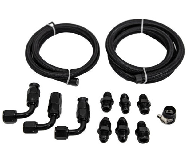 Complete your build with the most complete PS line kit on the market without breaking the bank! CVF Power Steering Line kits contain all the hoses and adapters you need for most of the popular applications or can be easily adapted through the use of AN adapters if not included for your application. **This kit is for integral (attached) reservoirs only. If using a remote reservoir, you will need part # PS-LINE-KIT-REM. If using a Ford power steering pump, you will also need an additional adapter fitting to convert to 6AN.