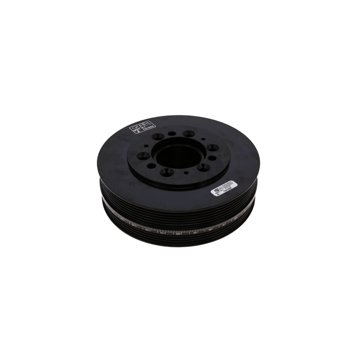 TSP's LT Harmonic Balancer is 30% more efficient above 5,000 rpm and frees up horse power over stock dampers. The shell is CNC-machined and is designed to mount to the crank hub so the timing marks never change position. It features an inertia ring and hub and is rebuild-able and tunable by replacing the elastomer strips. As an added feature, with the exposed inertia weight marked at TDC, you can tell that the elastomer strips need replacing when the marks start to move. All-around, this harmonic balancer has been built to handle your high performance LS engine with ease and features provisions for 4 and 6 groove belts.