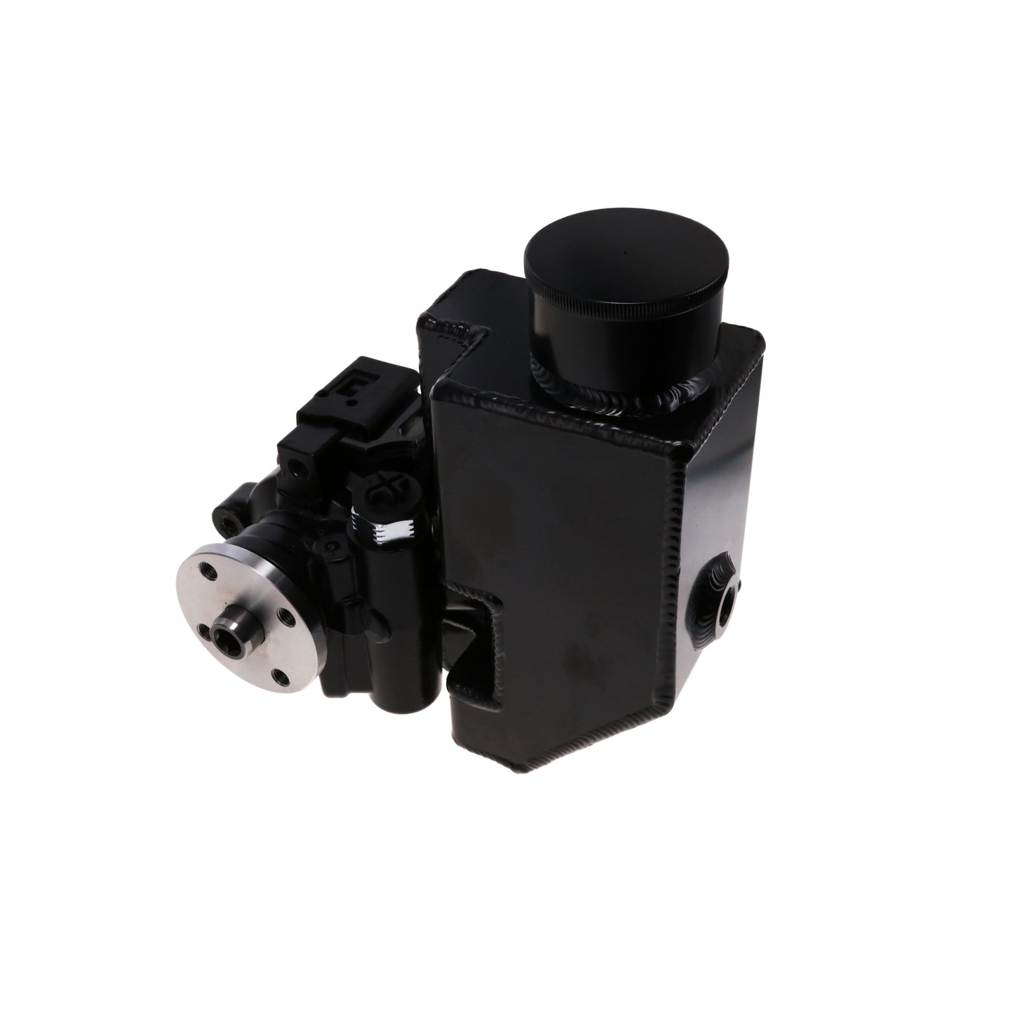 GM Type II Style Power Steering Pump with 18 oz Fabricated Aluminum Reservoir and Pulley Hub - Black
