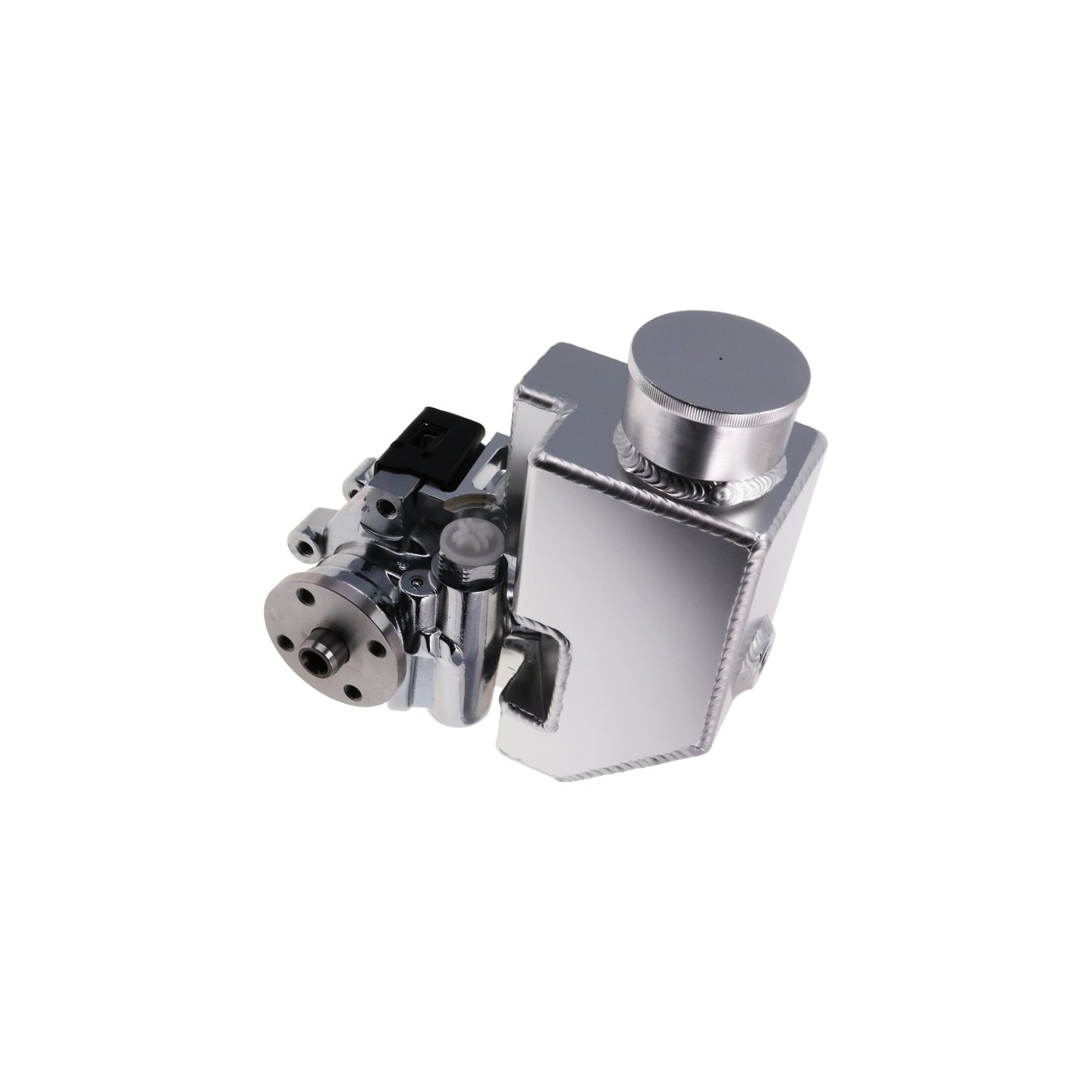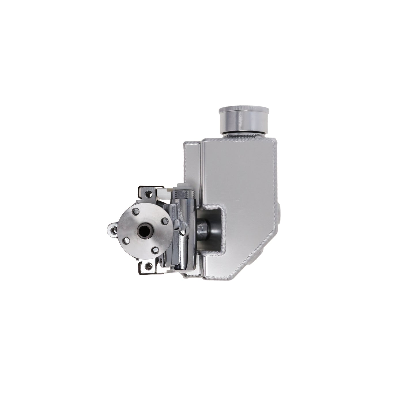 GM Type II Style Power Steering Pump with 18 oz Fabricated Aluminum Reservoir and Pulley Hub - Chrome